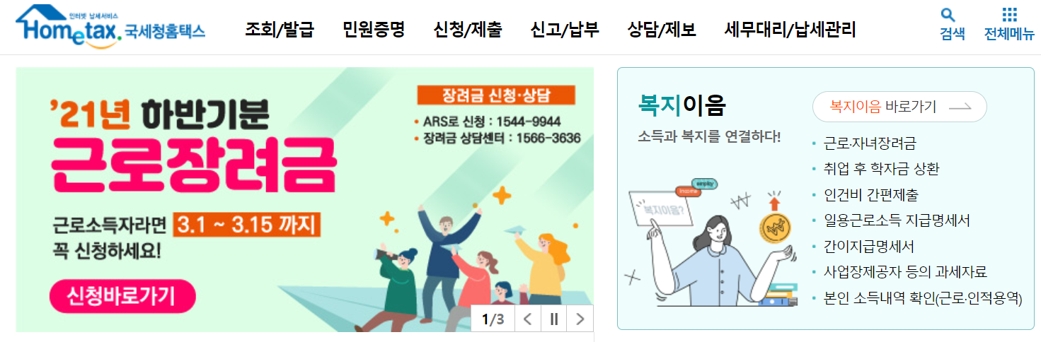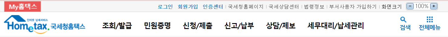 홈택스 홈페이지는 세무서에 가지 않고 언제 어디서나 인터넷을 편리하게 이용할 수 있습니다. 세무신고, 민원증명서 발급, 현금영수증 조회, 전자세금계산서 조회/발급 등 종합 국세 서비스를 모두 이용할 수 있는데요.